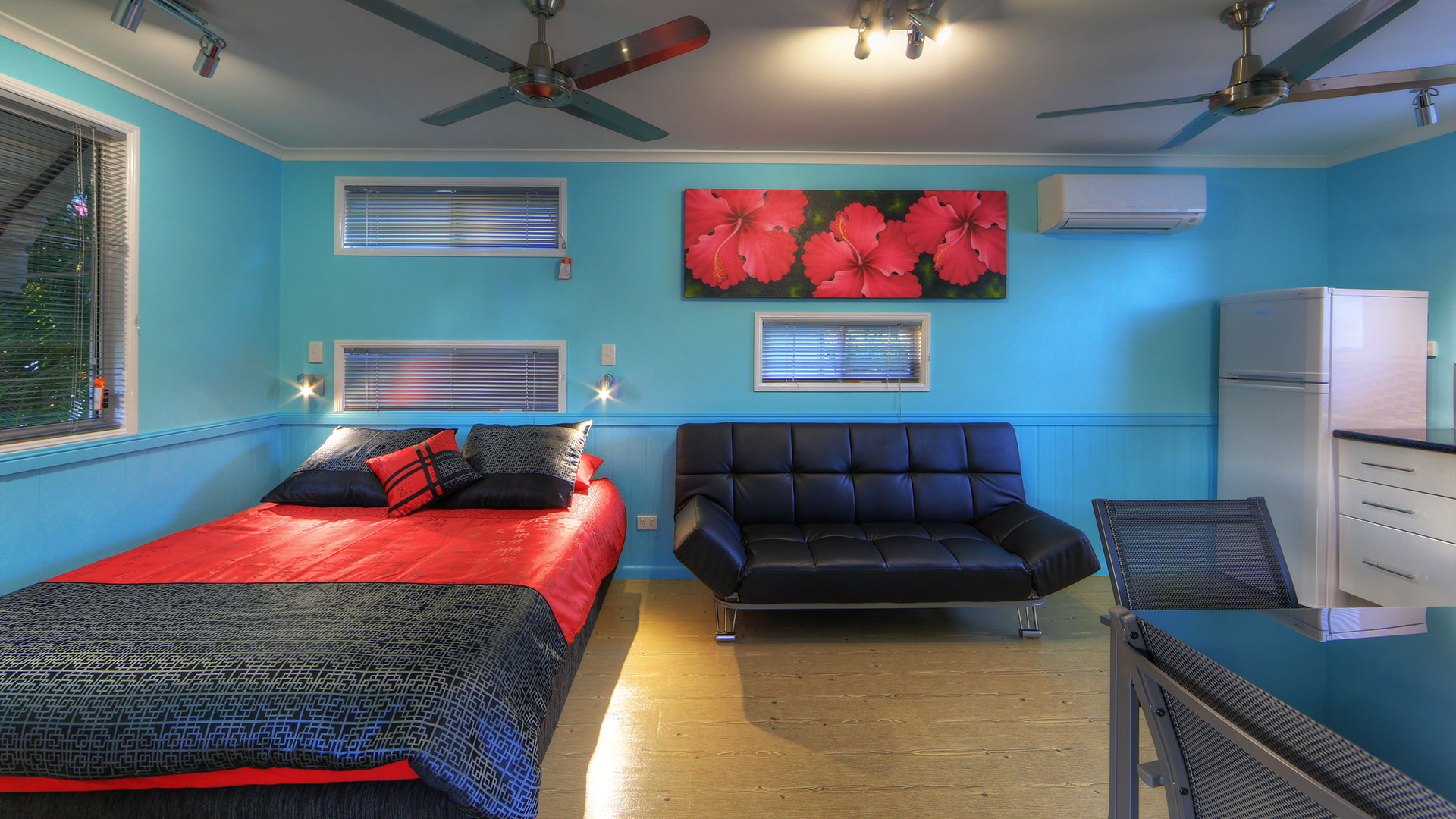 - Fully equipped kitchenette: Cook up your own meals with ease. Cabins come equipped with two burner electric cooktop, electric frypan, kettle, toaster, two door 220 litre fridge, coffee machine, range hood and all the bits and pieces needed to conjure up your tropical feast.